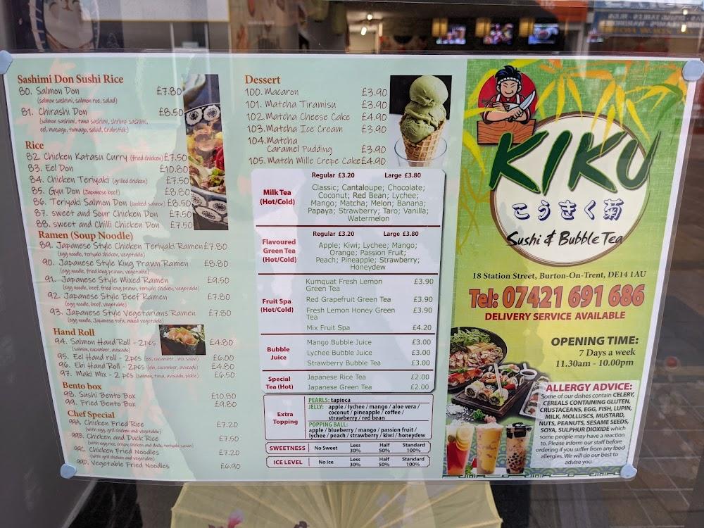 Kiku Sushi & Bubble Tea is nestled in the heart of Burton-on-Trent, making it a convenient stop for both locals and visitors exploring the area's culinary offerings. The location, with its wheelchair-accessible entrance, demonstrates a commitment to inclusivity, welcoming everyone to enjoy its delicious fare. With relaxed seating for about 15 diners, it creates an intimate atmosphere, ideal for quick stops or casual meals. Despite limited indoor seating, the takeaway option stands out, accommodating the bustling crowd, especially during peak lunch and dinner hours. Known for its strong community presence, Kiku often draws families, students, and professionals alike, making it a melting pot of local culture. The ambiance is enhanced by friendly staff who greet guests warmly, adding to the inviting atmosphere. Situated just steps from local shops and transport links, it serves as an ideal dining spot for those on the go or simply looking to unwind after a hectic day.